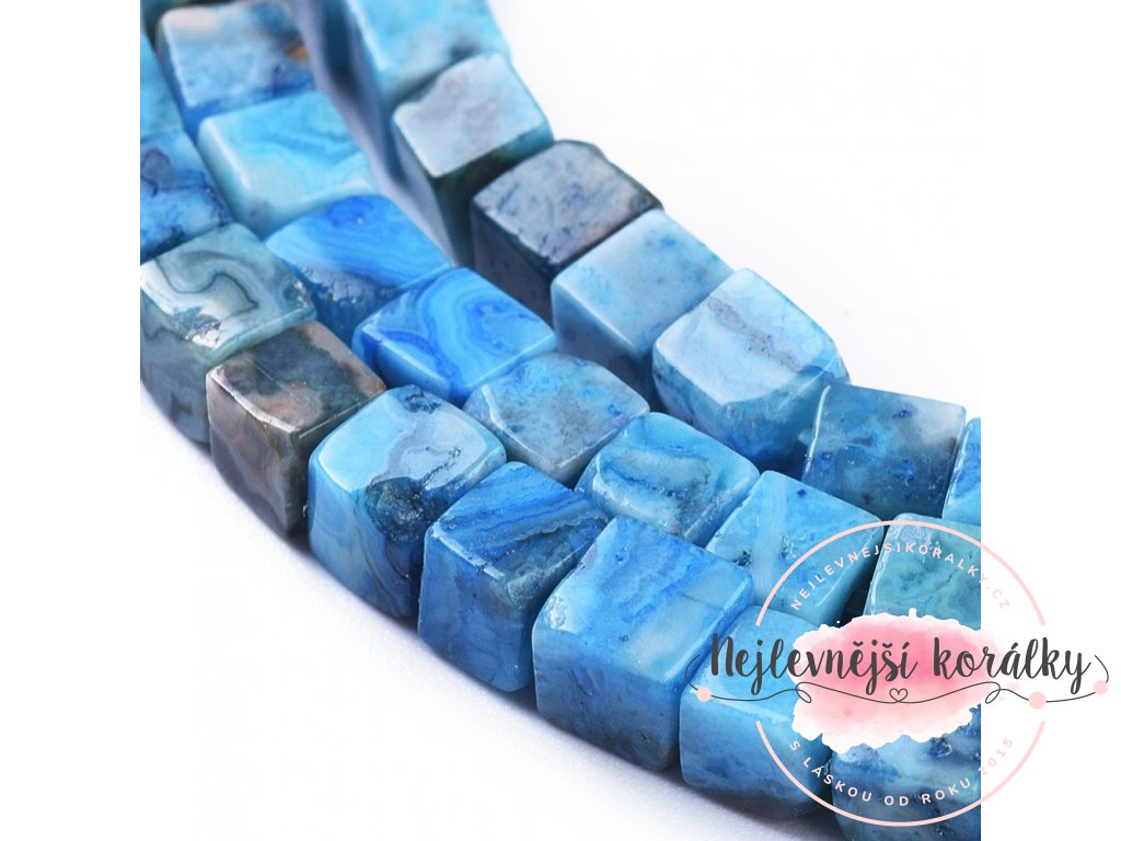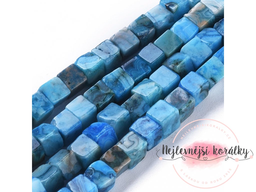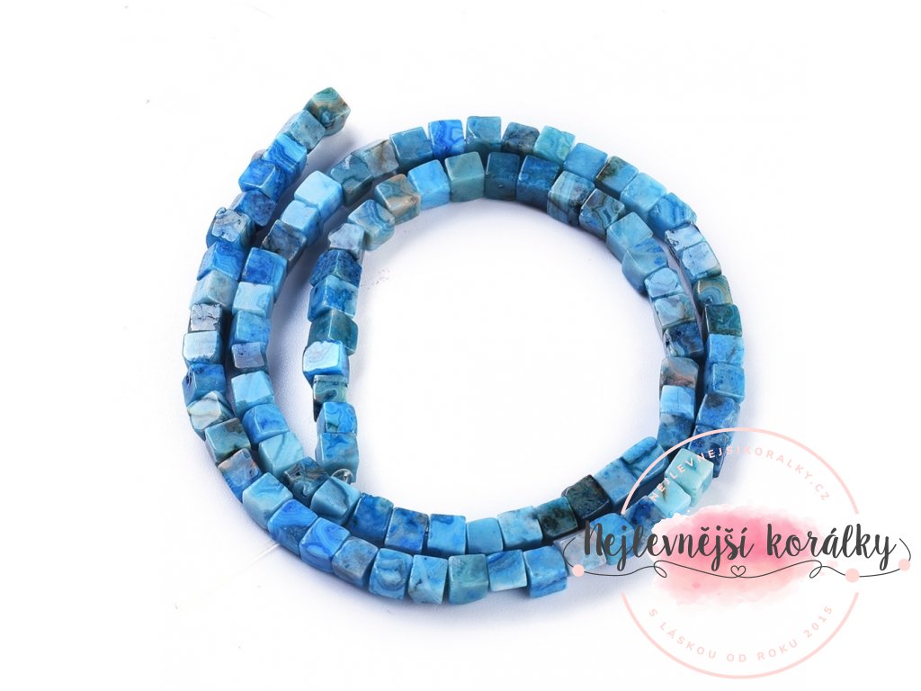 Přírodní bláznivý achát - kostička - modrá - 4 - 4,5 mm - 1 ks