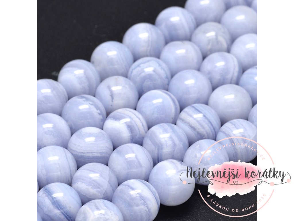Přírodní korálky z minerálu modrý krajkový achát o velikosti 8 mm s velikostí průvleku 1 mm.