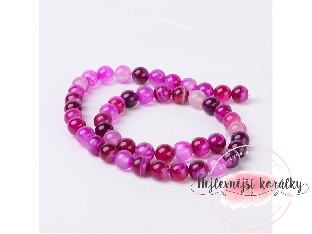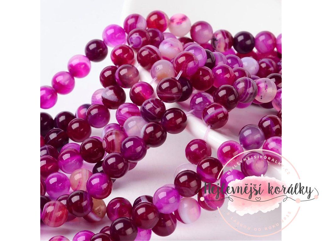 Přírodní pruhovaný achát - fuchsiový - třída A - ∅ 8 mm - 1 ks