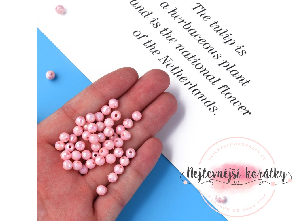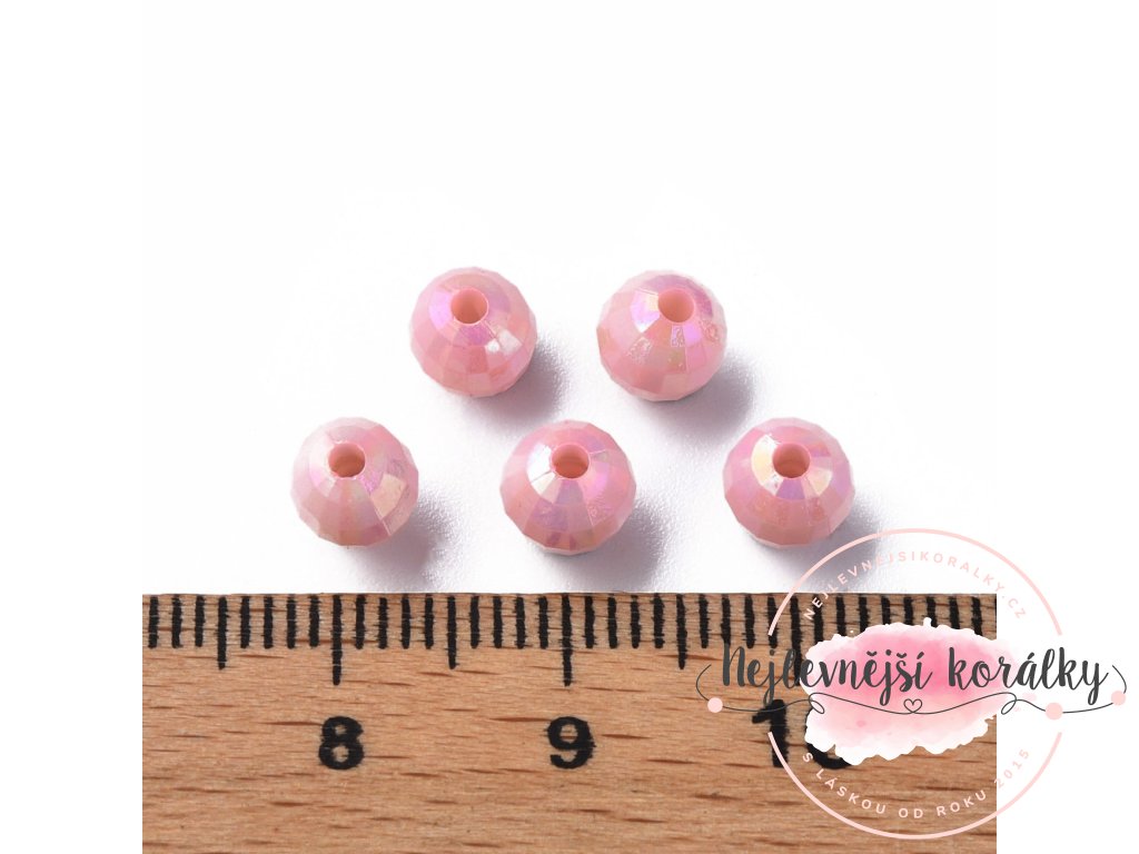 Akrylové korálky broušené - AB efekt - starorůžové - ∅ 6 mm - 10 ks