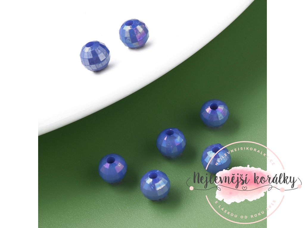 Akrylové korálky broušené - AB efekt - světle modré - ∅ 6 mm - 10 ks