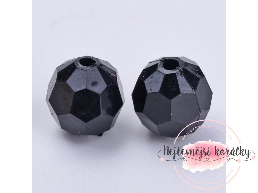 Akrylové broušené korálky v černém provedení o velikosti 6 mm s velikostí průvleku 1,3 mm.