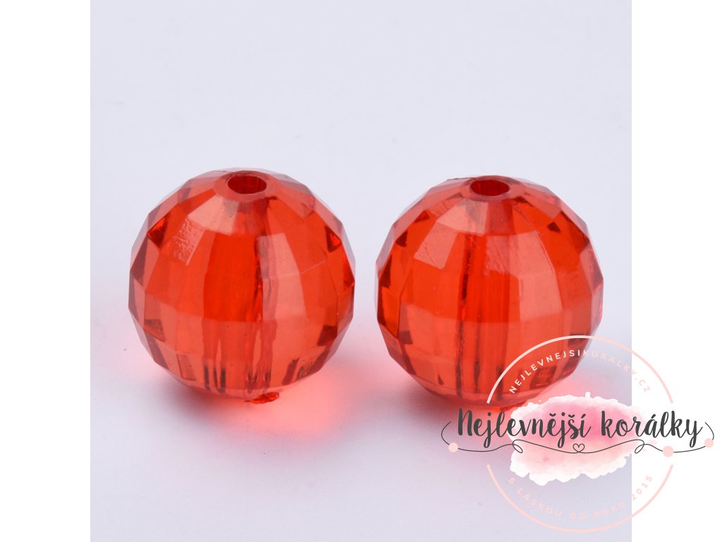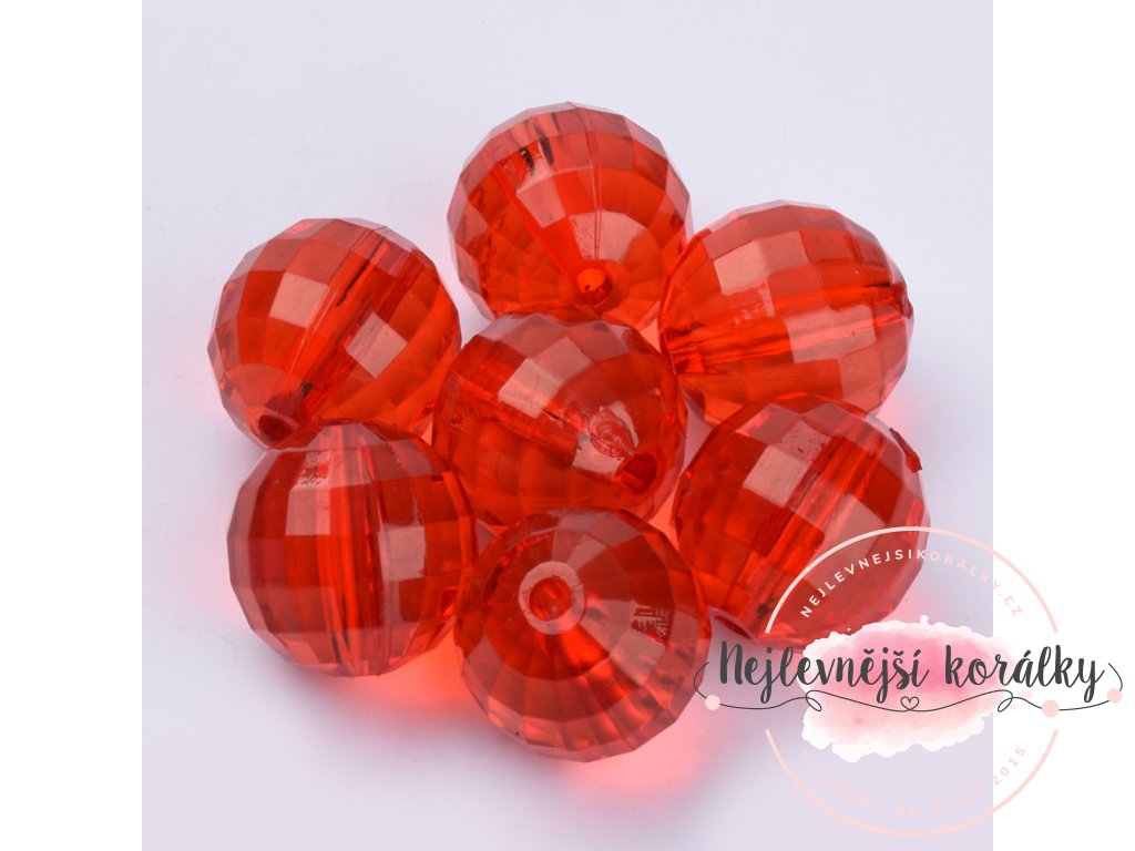 Akrylové broušené korálky v červeném provedení o velikosti 8 mm s velikostí průvleku 1,5 mm.