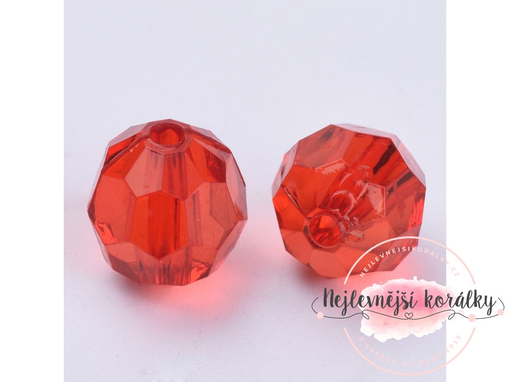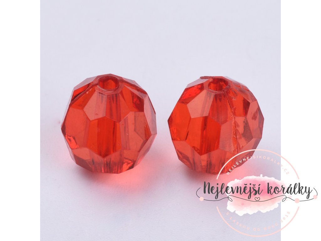 Akrylové korálky broušené - červené - ∅ 6 mm - 10 ks
