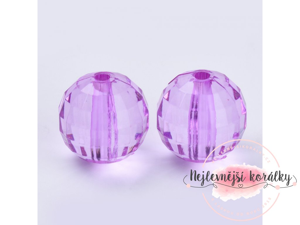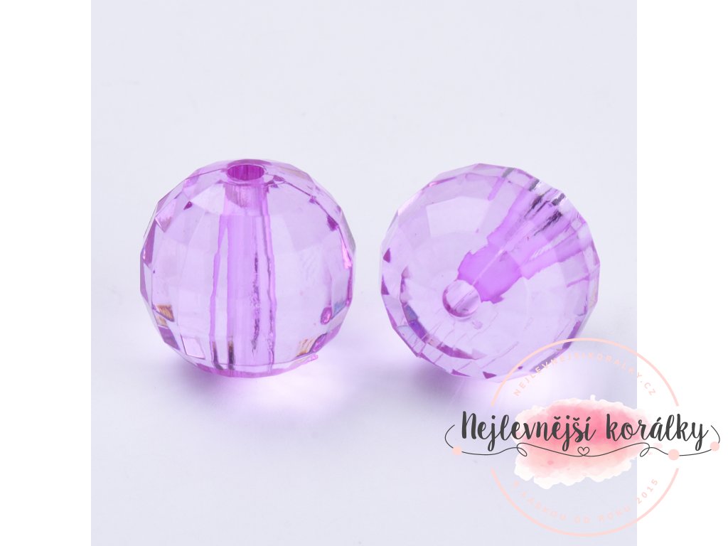 Akrylové broušené korálky ve fialovém provedení o velikosti 8 mm s velikostí průvleku 1,5 mm.