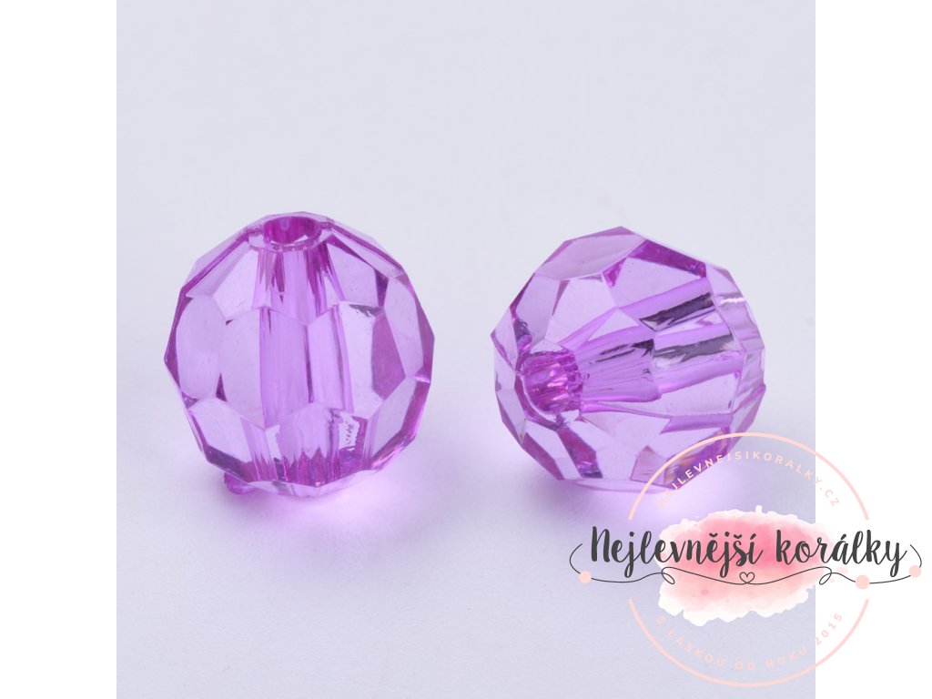 Akrylové broušené korálky ve fialovém provedení o velikosti 6 mm s velikostí průvleku 1,3 mm.