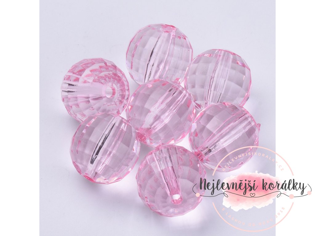 Akrylové korálky broušené - světle růžová - ∅ 8 mm - 10 ks