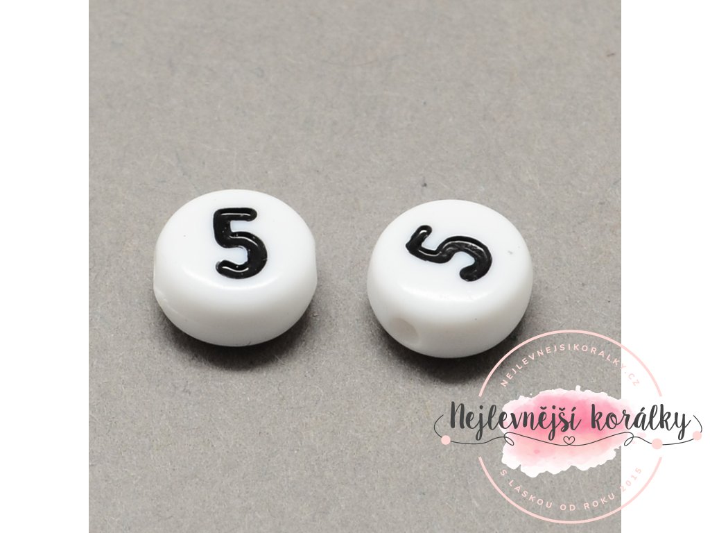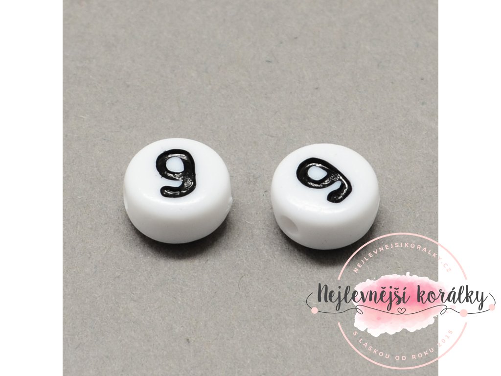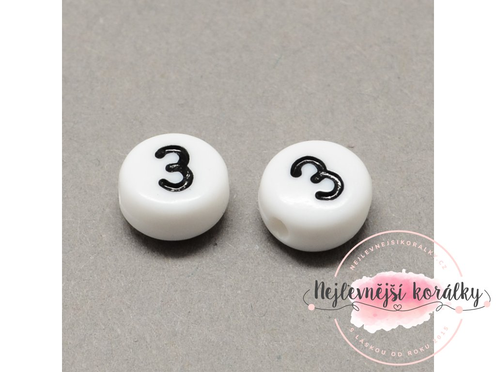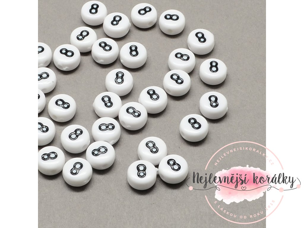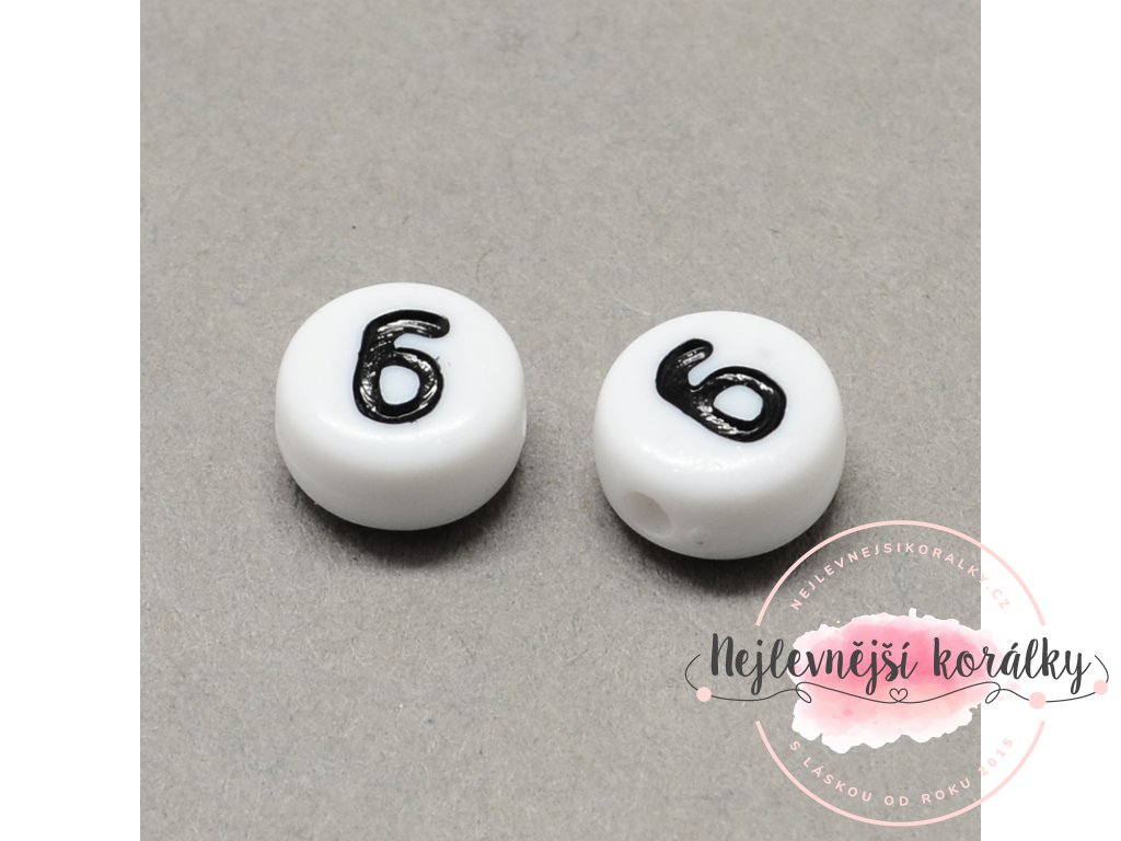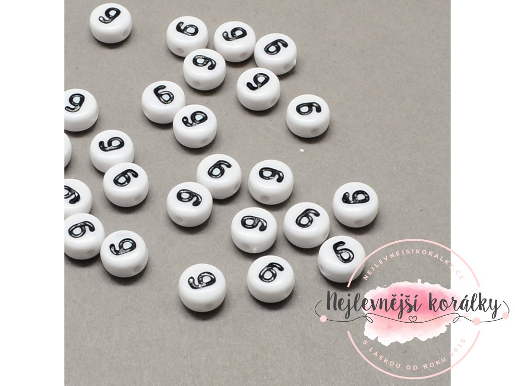 Akrylové korálky s čísly - bílé lentilky - 10 ks