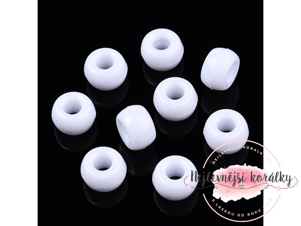 Akrylové korálky typu pony beads v bílém provedení.
