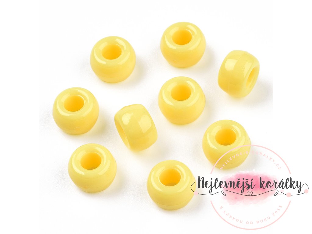 Akrylové korálky - pony beads - žluté - 6 x 9 mm - 10 ks