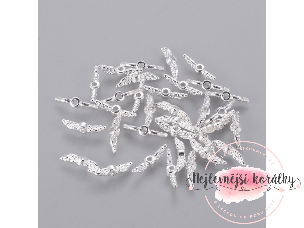 Kovová andělská křídla - stříbrná - 12 x 3 x 3 mm - 1 ks