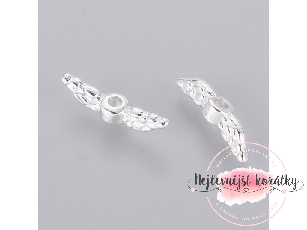 Andělská křídla ve stříbrném provedení o šířce 12 mm, výšce 3 mm, hloubce 3 mm s velikostí průvleku 1,5 mm.