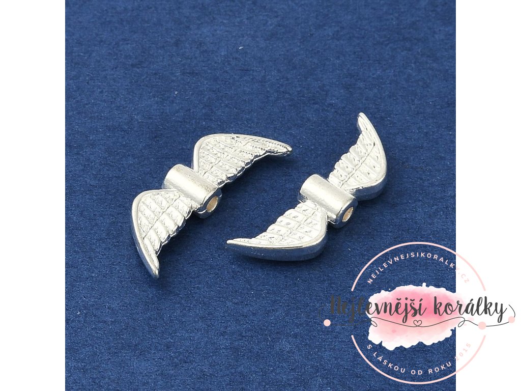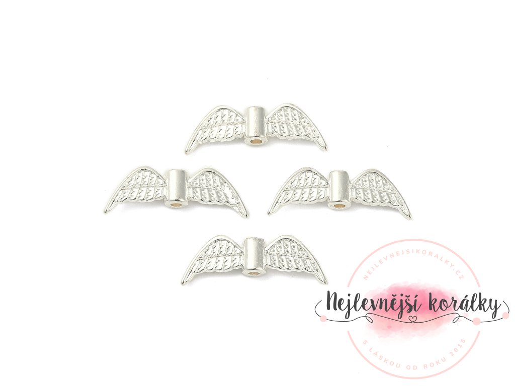 Kovové oddělovací korálky ve tvaru andělských křídel ve stříbrném provedení.