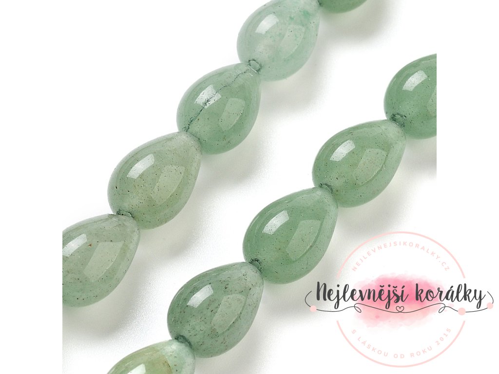 Přírodní zelený avanturín - kapka - 12 x 8 mm - 1 ks