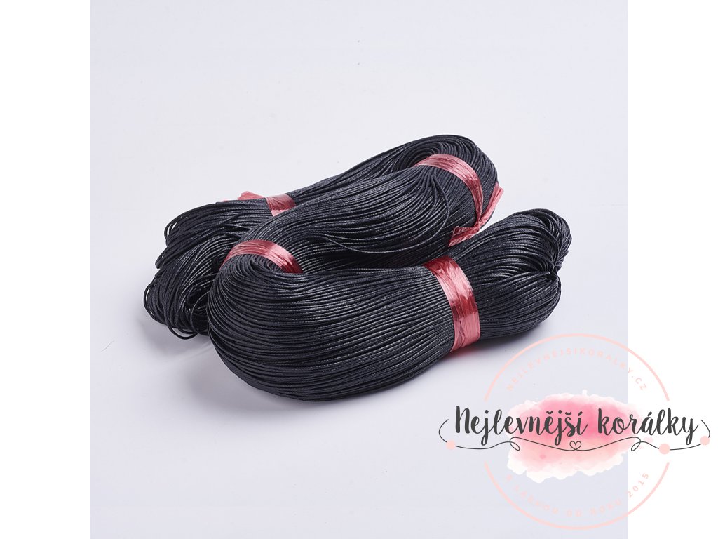 Bavlněná voskovaná šňůra v černém provedení o šířce 1 mm.
