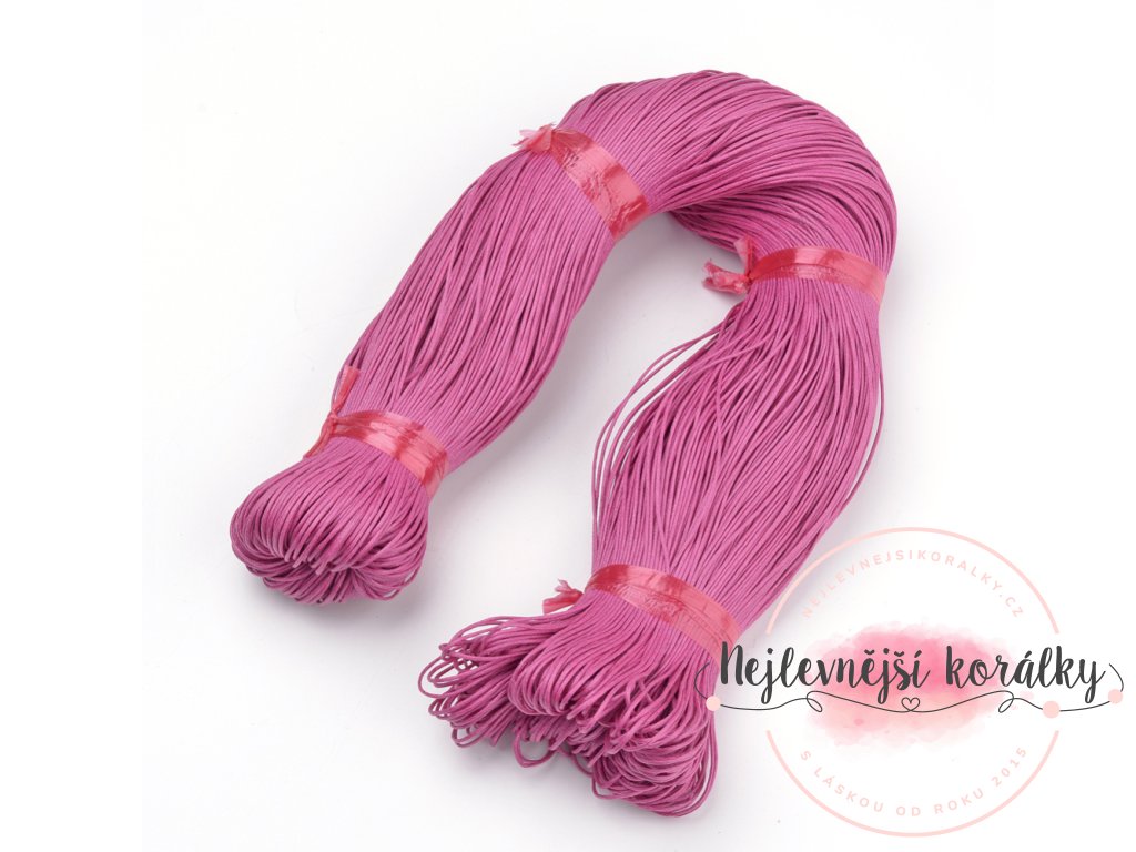 Bavlněná voskovaná šňůra ve tmavě růžovém provedení o šířce 1 mm.