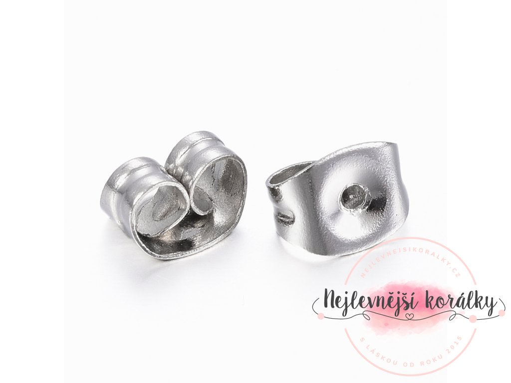 Náušnicové zarážky z nerezové oceli - 6 x 4,5 x 3,5 mm - dírka 0,9 mm - 10 ks