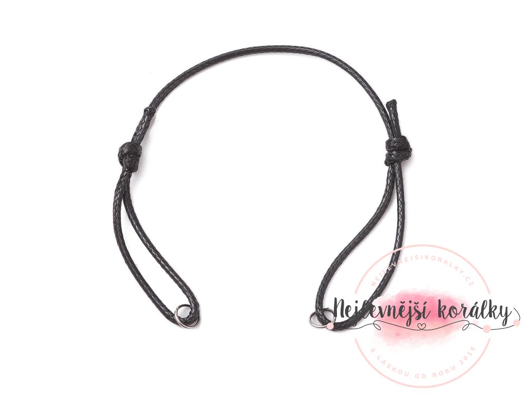 Polotovar pro výrobu náramku z voskované šnůry s kroužky - černý - 13–24 cm - 1 ks