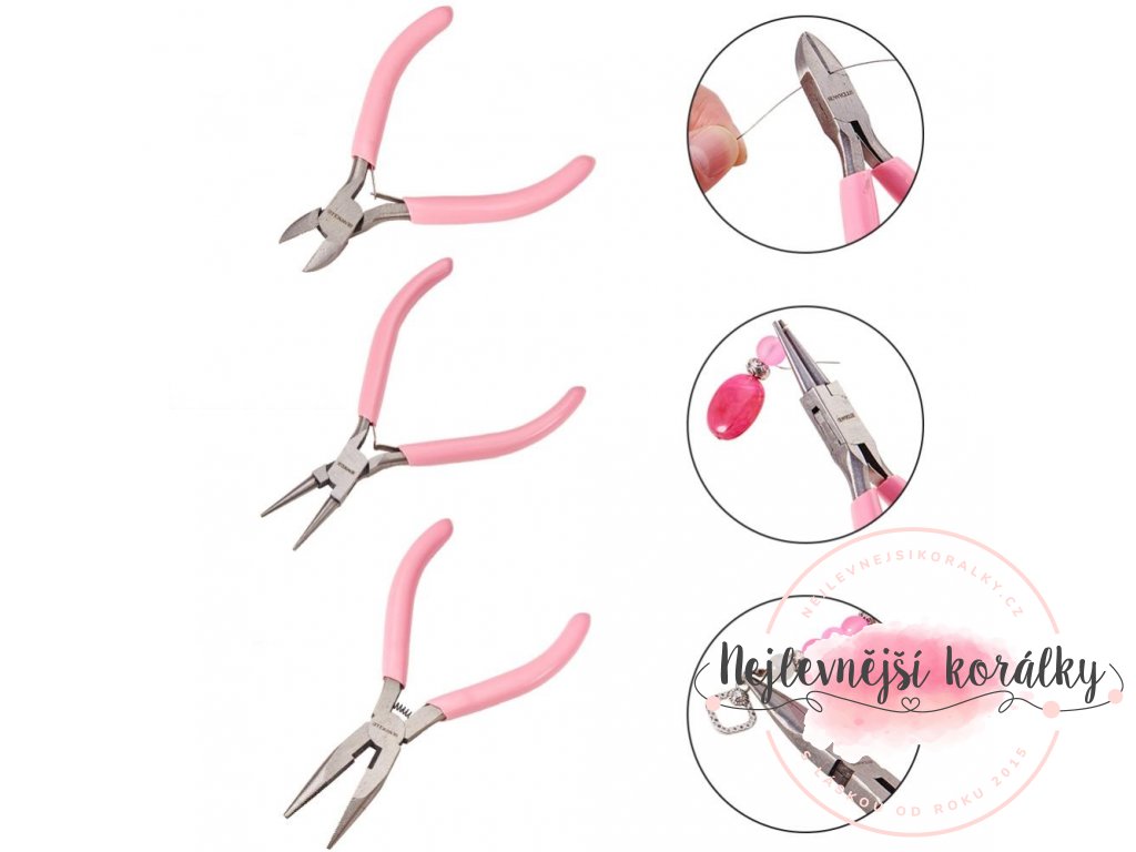 Sada obsahuje kulaté ketlovací kleště, štípací kleště a půlkulaté kleště