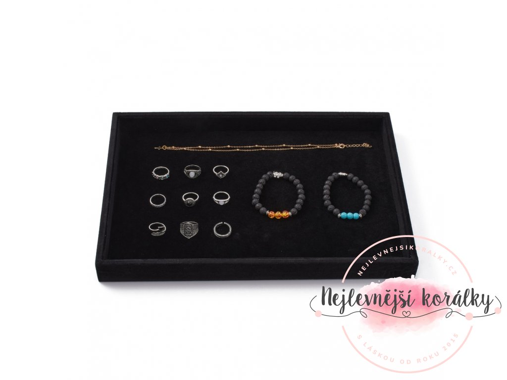 Sametové plato na šperky - černé - 35 x 24 x 3 cm - 1 ks
