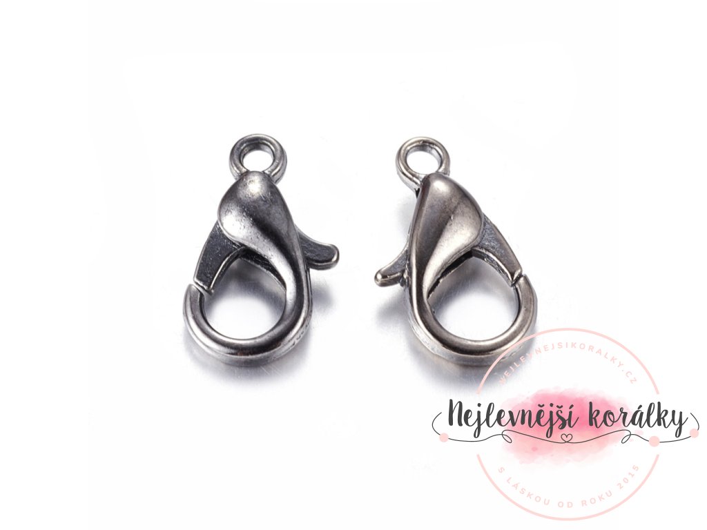 Karabinka je vyrobena ze slitiny zinku a opatřena černou povrchovou úpravou, která dodává šperkům výraznější a současný vzhled. Typ zapínání „lobster“ je oblíbený pro svou spolehlivost a snadnou manipulaci.