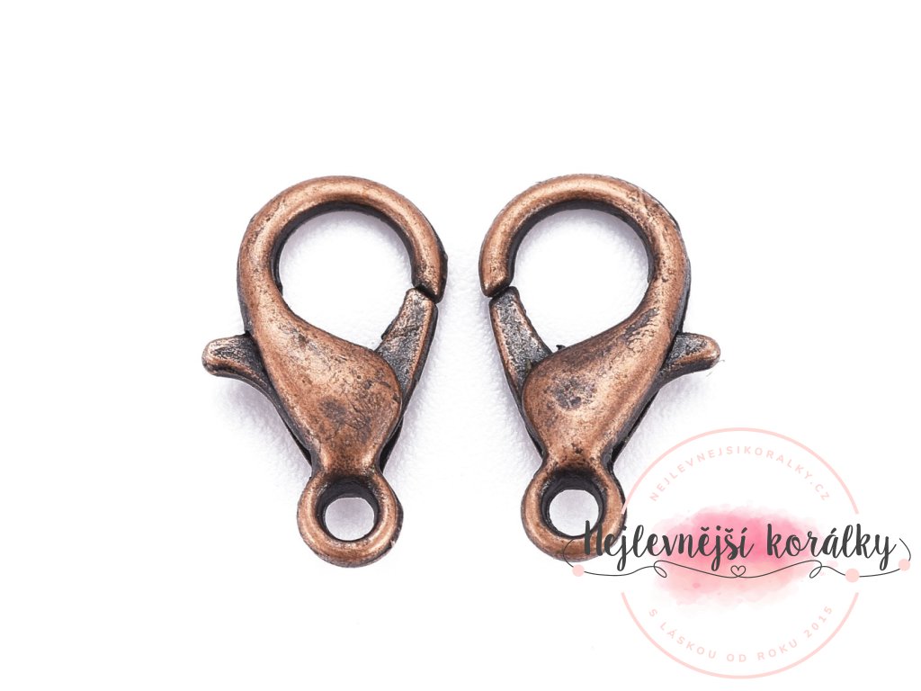 Karabinka v patinově měděném provedení o velikosti 12 × 6 mm s očkem pro průvlek 1,2 mm.