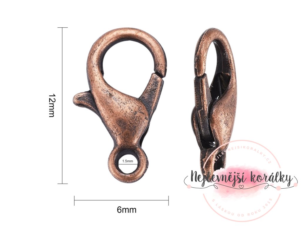 Karabinka - měděná - 12 x 6 mm - 1 ks