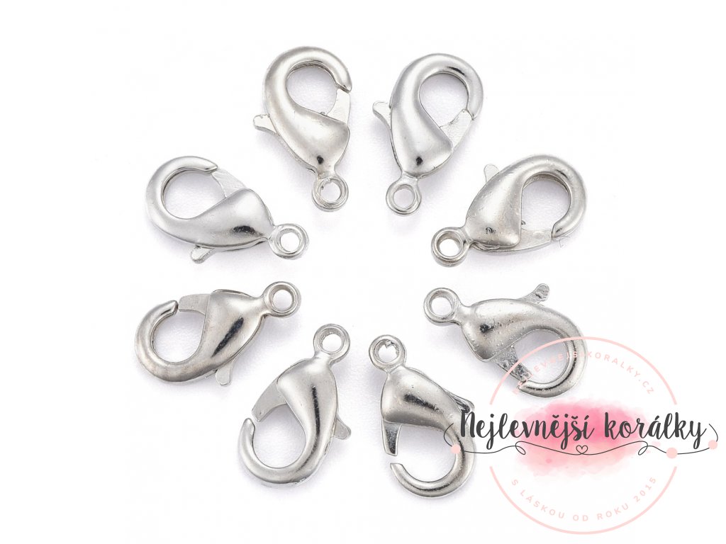 Karabinka - stříbrná - 12 x 6 mm - 1 ks