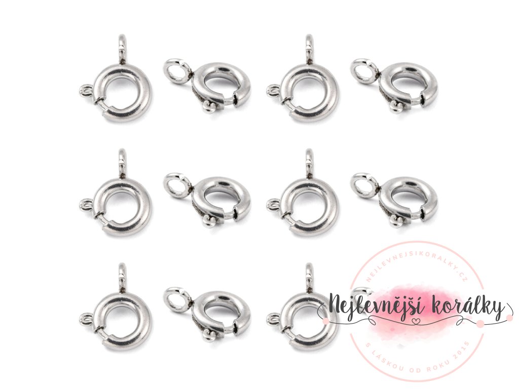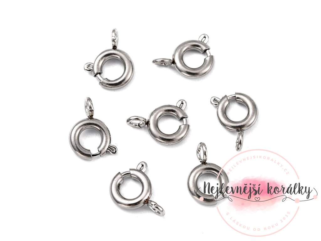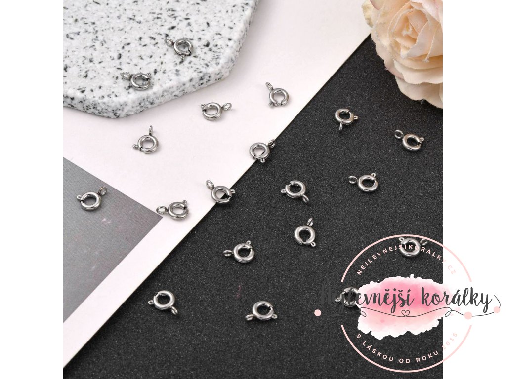 Kvalitní masivnější kroužkové (pružinkové) zapínání z nerezové oceli 304 s v platinové barvě.