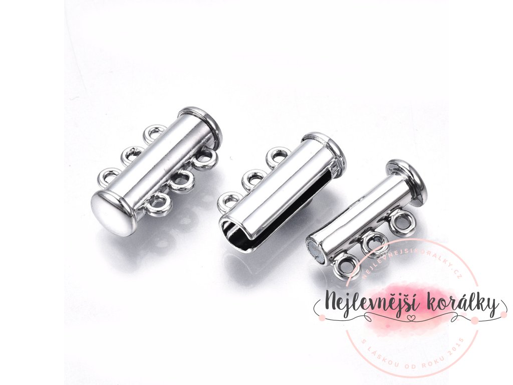 Magnetické zapínání - posuvný zámek pro 3 řady - platinové - 19 x 10,5 mm - 1 ks