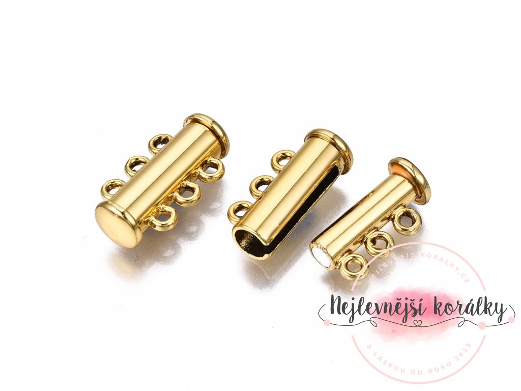 Magnetické zapínání - posuvný zámek pro 3 řady - zlaté - 19,5 x 10,5 mm - 1 ks