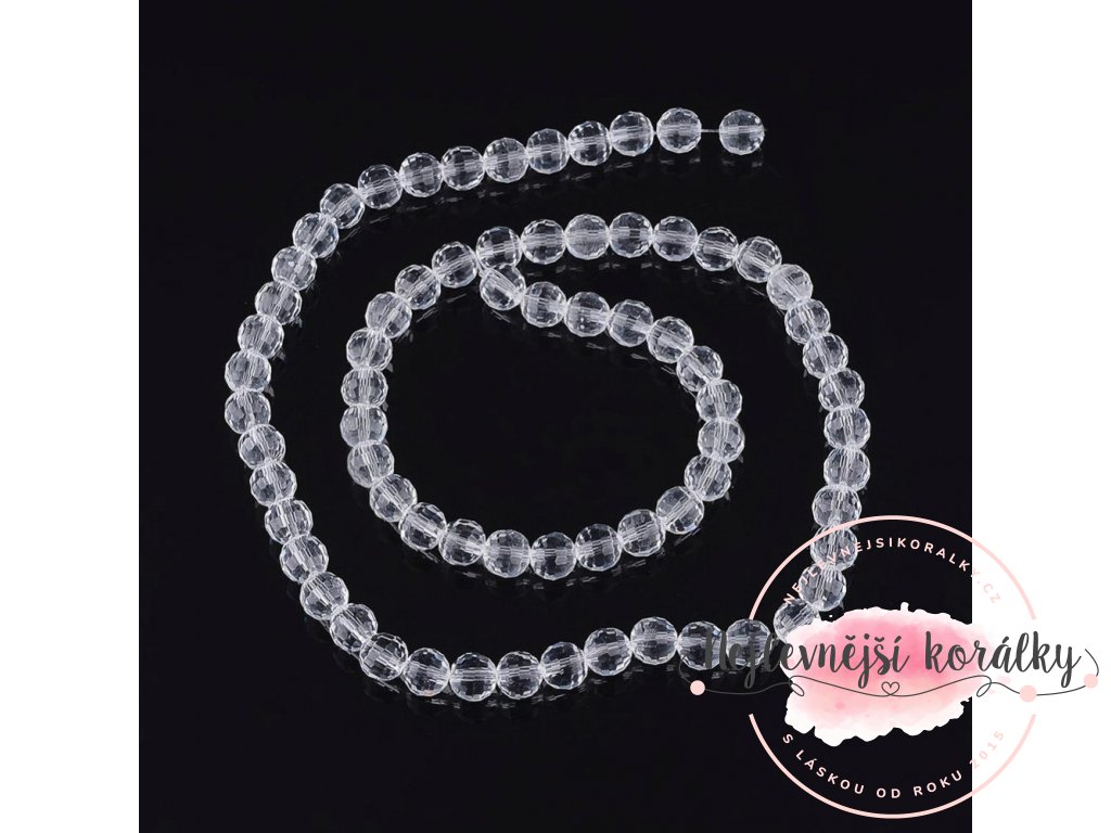 Broušené korálky v čirém provedení o průměru 8 mm s velikostí průvleku 1 mm.
