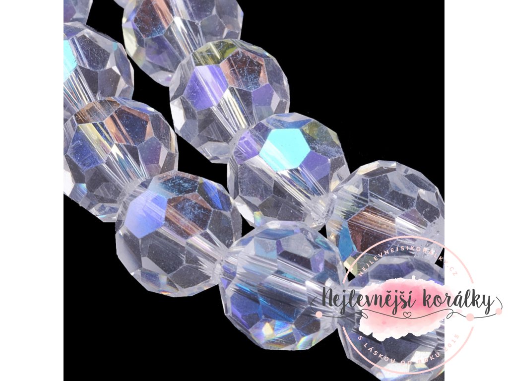 Broušené korálky - čiré s AB efektem - ∅ 8 mm - 10 ks