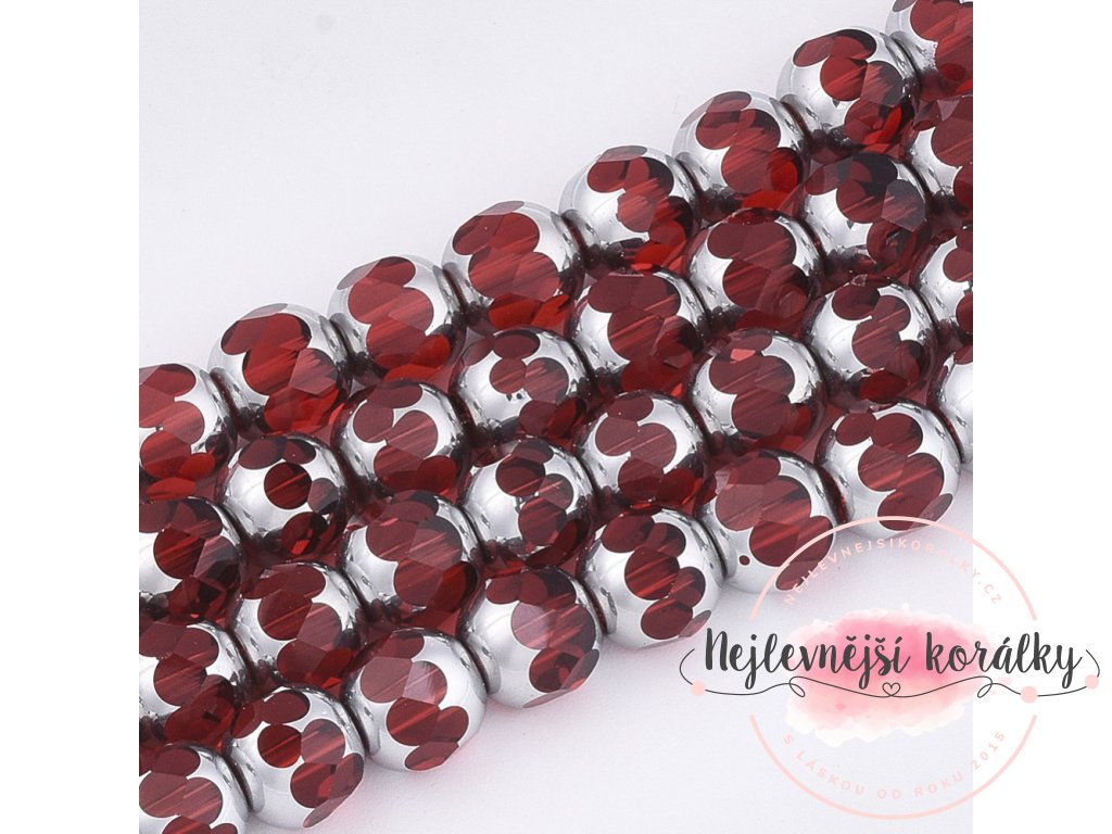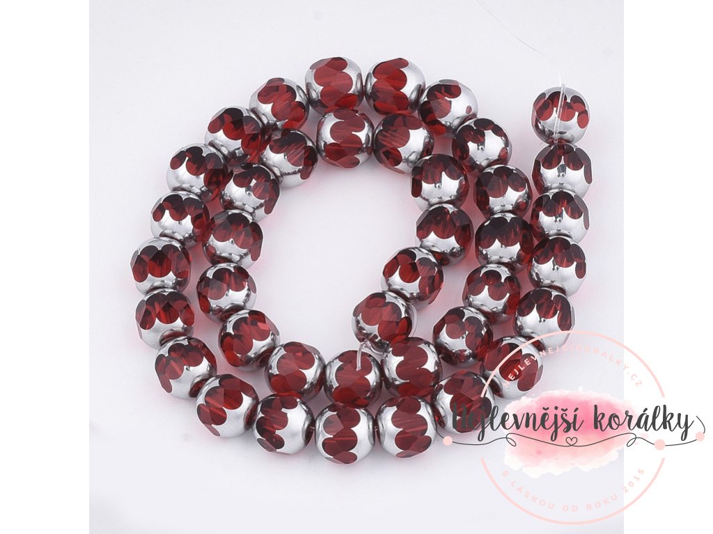 Broušené korálky - pokovené - červené ~ 8 mm - 1 ks