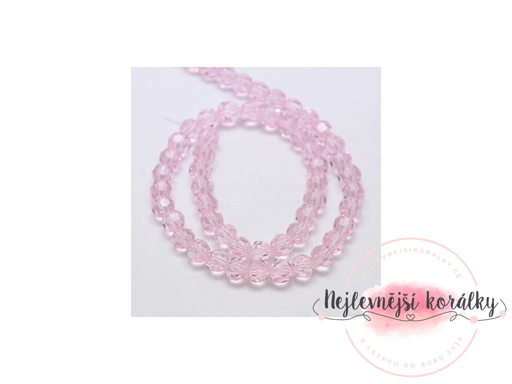 Broušené korálky - průsvitné - růžové - 4 mm - 10 ks