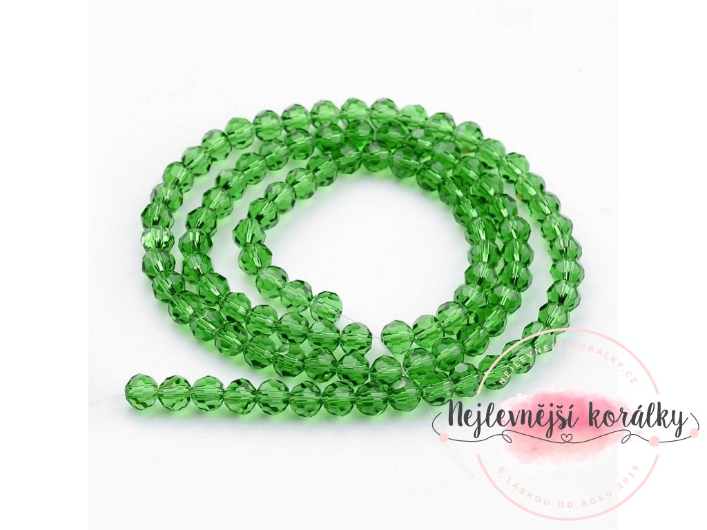 Skleněné korálky - broušené - imitace Swarovski - tmavě zelené - 4 x 4 mm - 10 ks