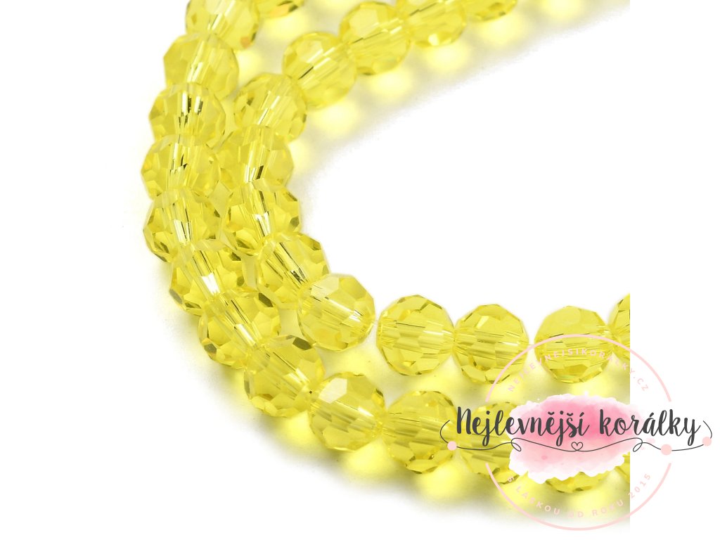 Broušené korálky - průsvitné - žluté - 6 mm - 10 ks