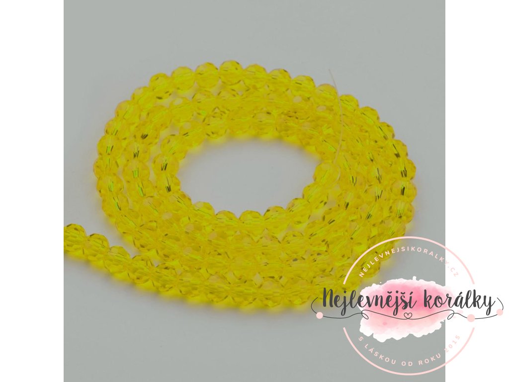 Broušené korálky ve žlutém průsvitném provedení o průměru 4 mm s velikostí průvleku 1 mm.