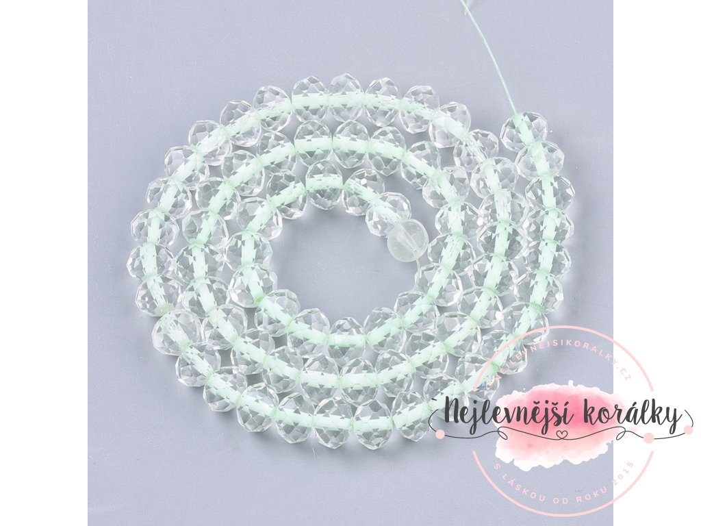 Korálky ve tvaru slavíka – broušené rondelky, jsou vyrobeny ze skla a mají vybroušené plošky, které vytváří zářivě lesklý efekt.
