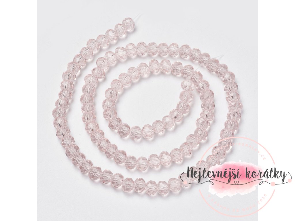 Broušené korálky v růžovém průsvitném provedení o délce 8 mm, šířce 8 mm, hloubce 6 mm s průvlekem o velikost 1 mm.