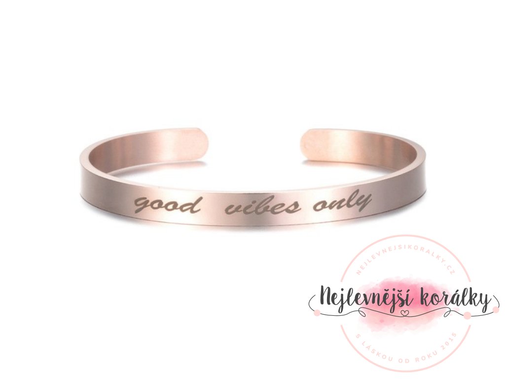 Náramek z chirurgické oceli - GOOD VIBES ONLY - růžově zlatý - 1 ks
