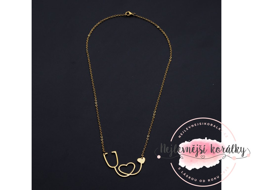 Náhrdelník z nerezové oceli - fonendoskop - zlatý - 1 ks