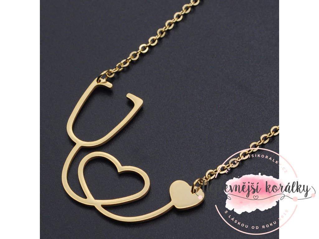 Elegantní náhrdelníky s přívěskem ve tvaru fonendoskopu jsou vyrobeny z kvalitní nerezové oceli 201, mají zlatou povrchovou úpravu
