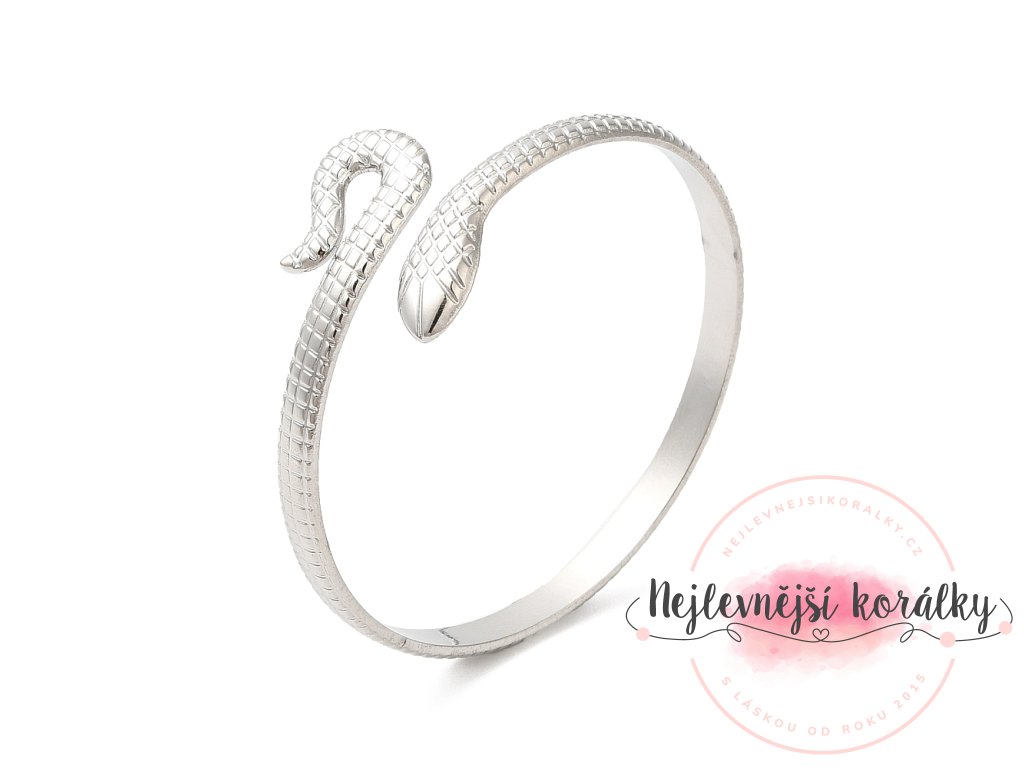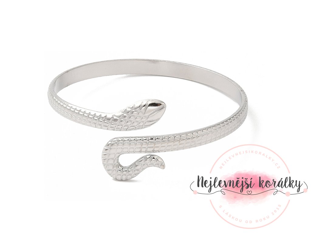 Náramek z nerezové oceli - had - platinový - 1 ks
