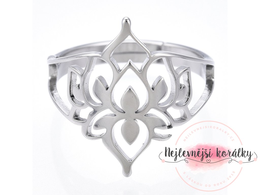 Prsten z nerezové oceli - květinový motiv - platinový - univerzální - 1 ks