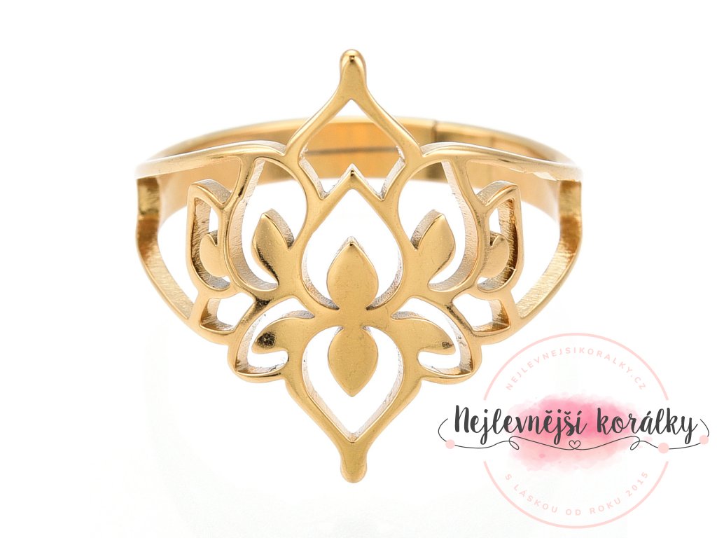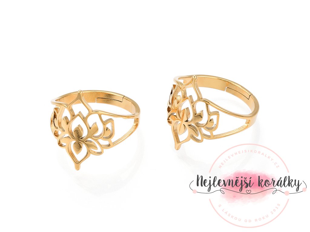 Prsten z nerezové oceli - květinový motiv - pozlacený 18K zlatem - univerzální - 1 ks