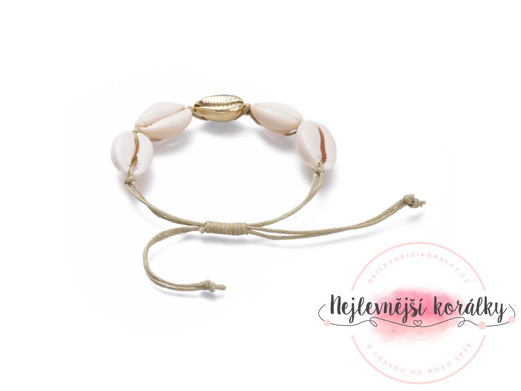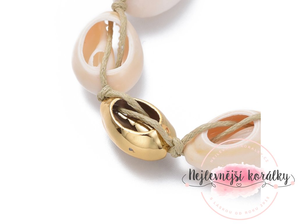Šňůrkový náramek z přírodních Kauri mušlí - Gold Ithea - režný - univerzální - 1 ks