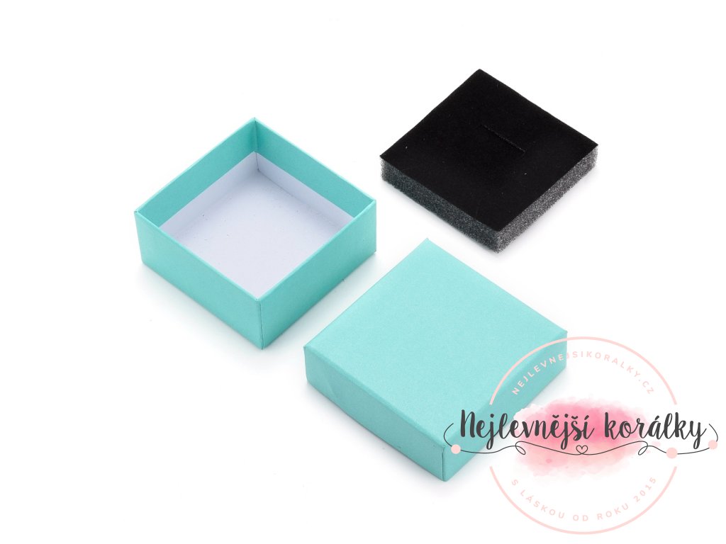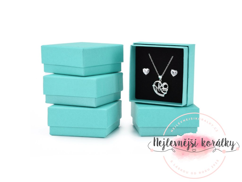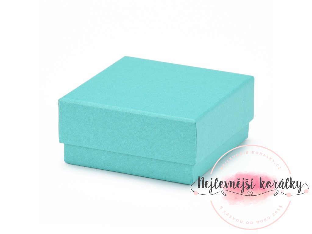 Dárková krabička na šperky - tyrkysová - 7,5 x 7,5 x 3,5 cm - 1 ks