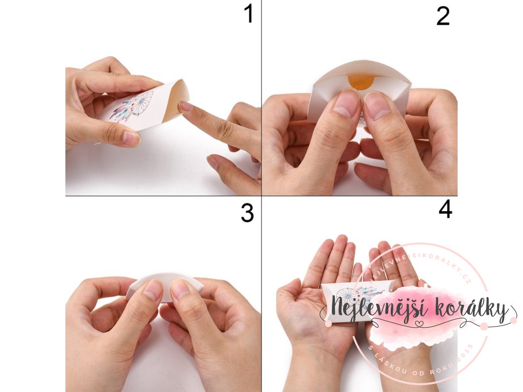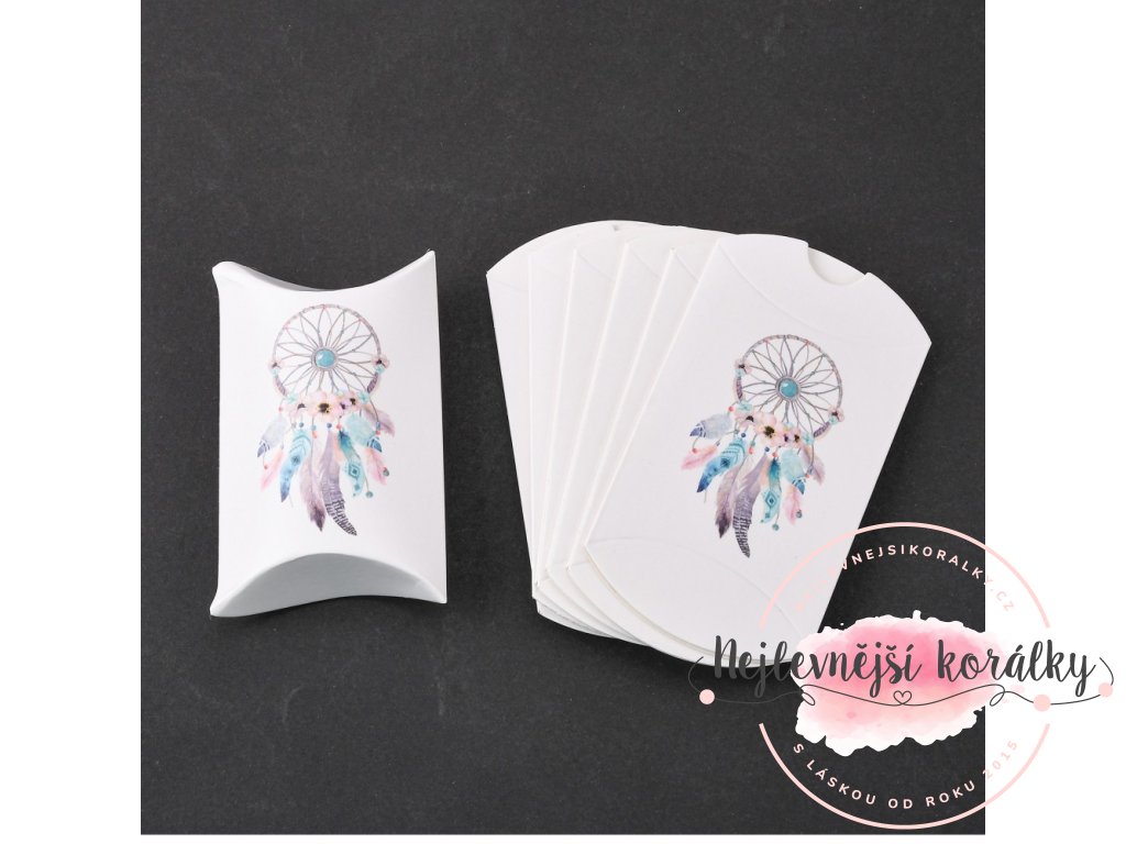 Skládací papírová dárková krabička - bílá - lapač snů - 9,9 x 5,5 x 0,1 cm - 1 ks