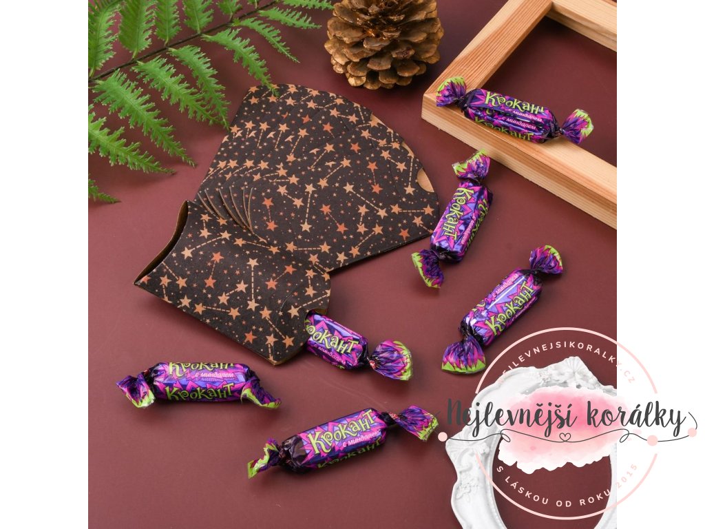Krabička v hnědém provedení s jemným obrázkem hvězd a jejich spojení je vyrobena z kvalitního tvrdého papíru, který zajišťuje její pevnost a odolnost. Elegantní design dodává krabičce kouzlo a činí ji ideální pro každou příležitost.